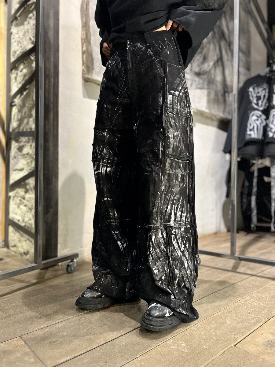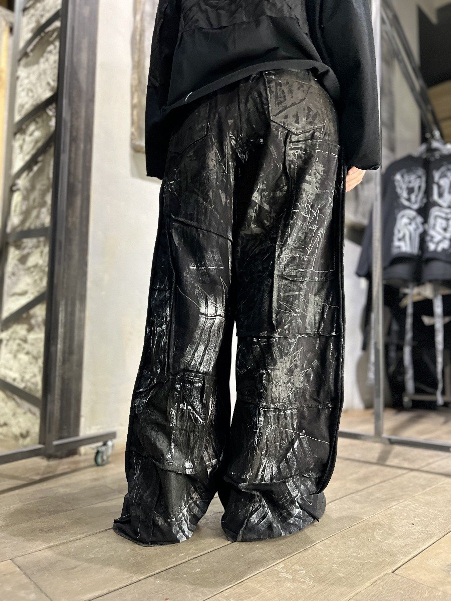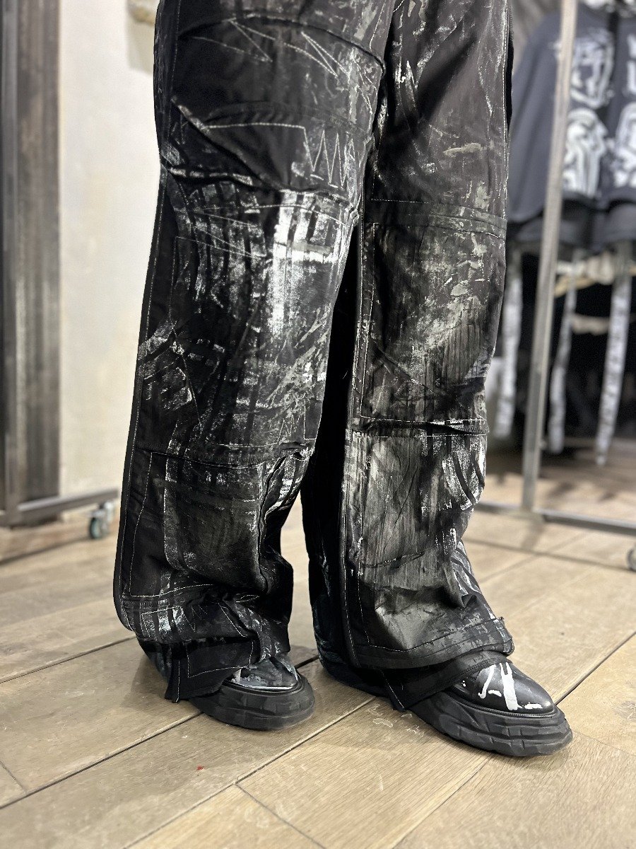 Модель декорирована разными отстрочками и волнообразным принтом.