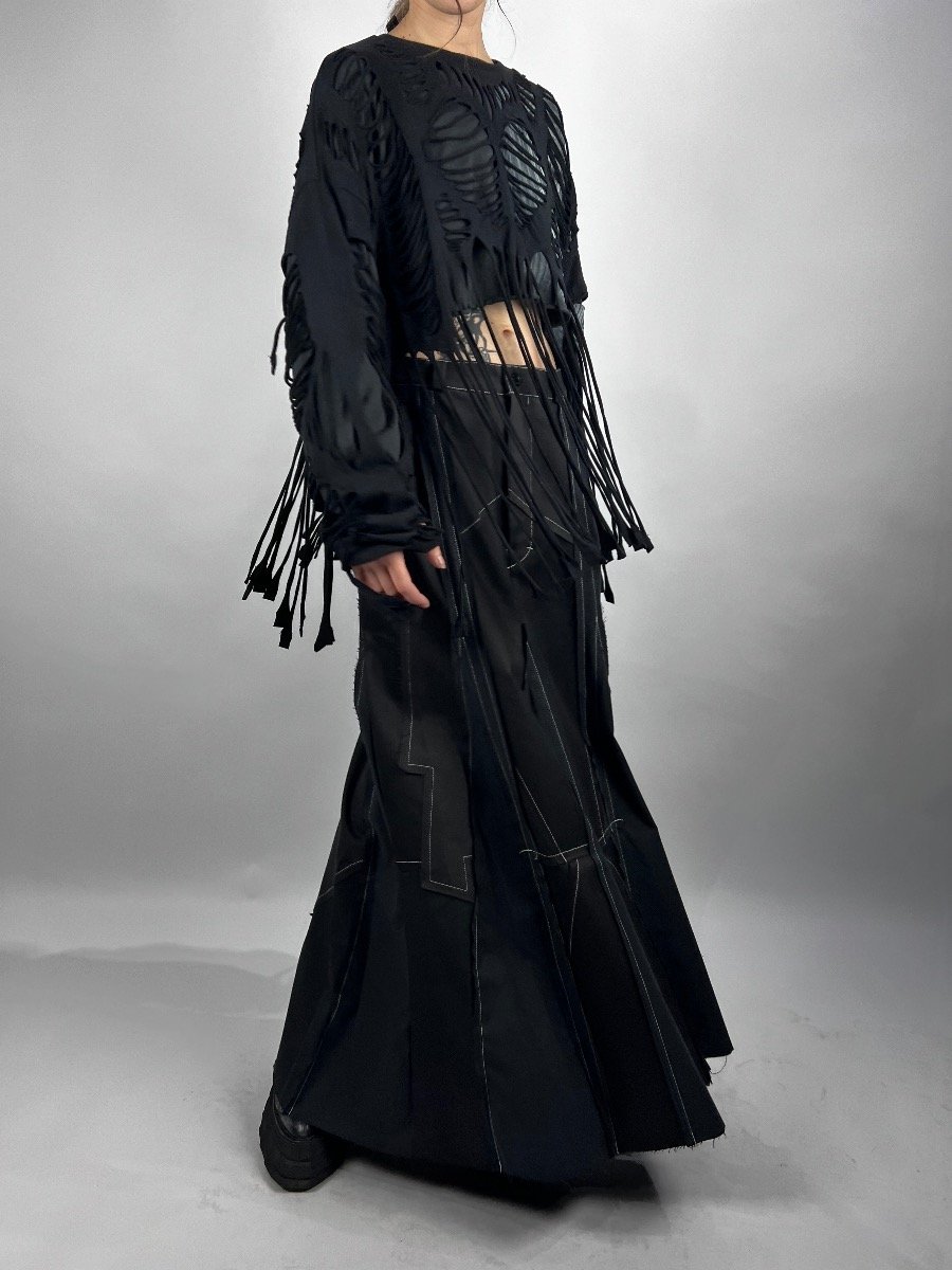 Хлопковый лонгслив с бахромчатыми элементами