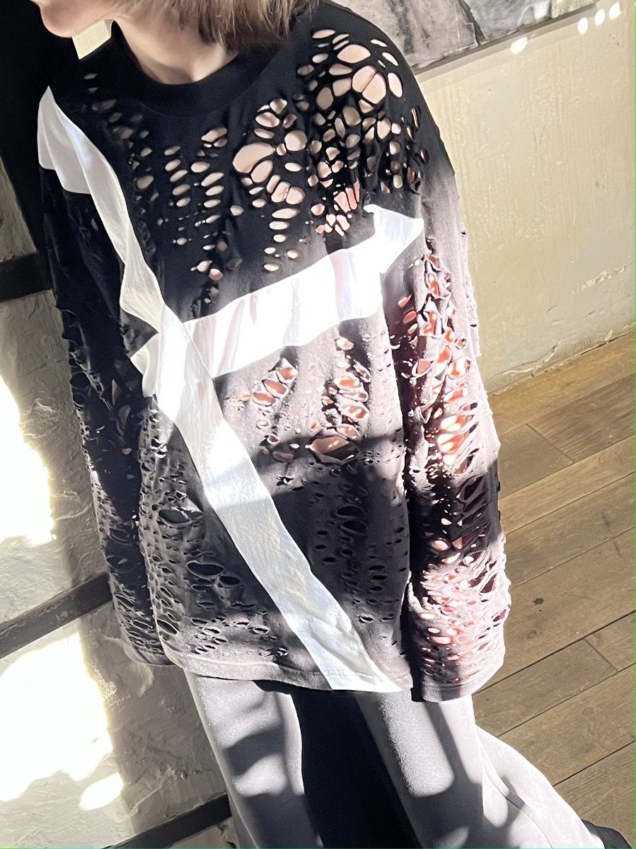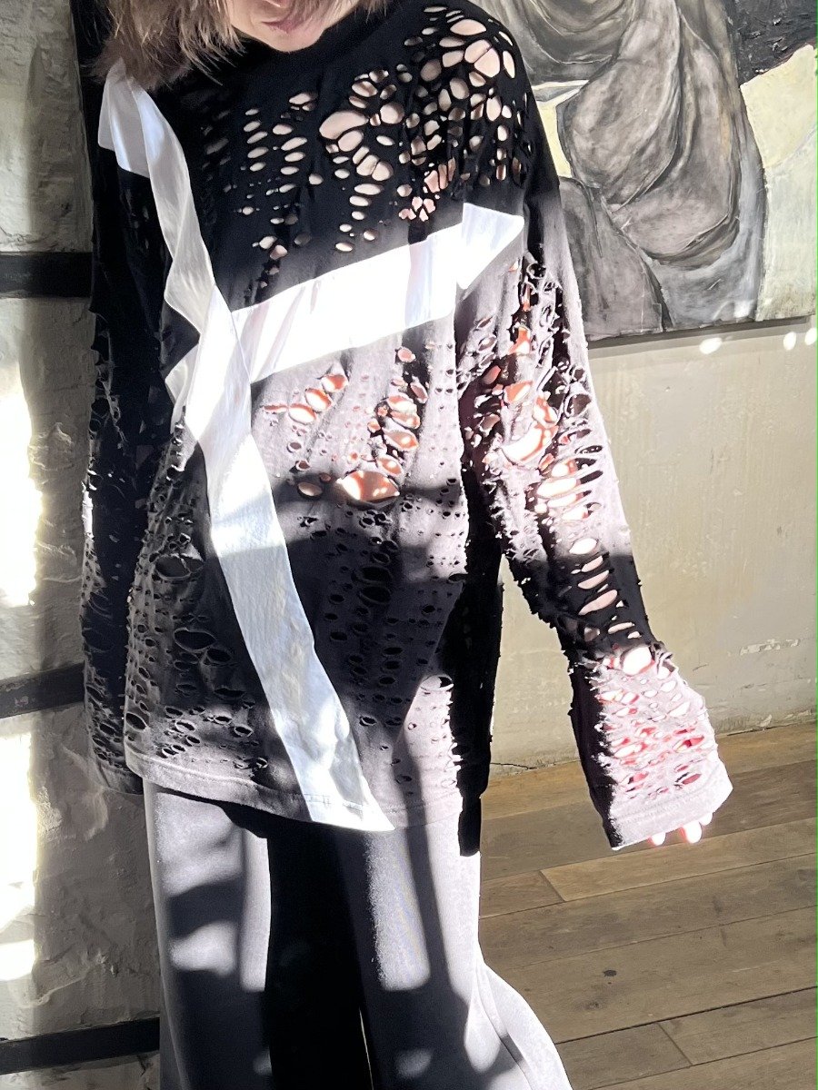 Лонгслив из наутрального хлопка, свободного кроя, оверсайз, с перфорацией.