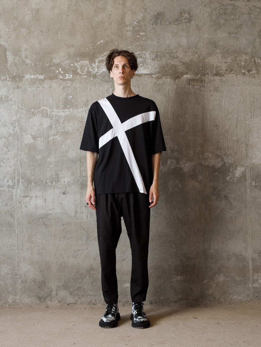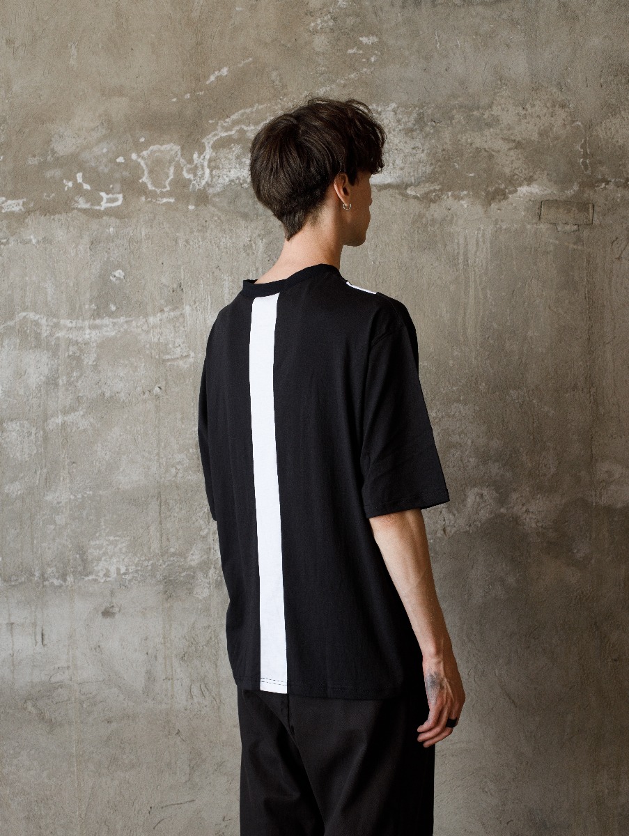 Чёрная футболка из наутрального хлопка, свободного кроя, оверсайз.