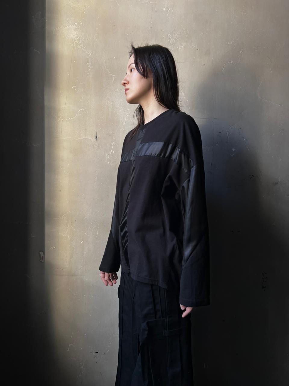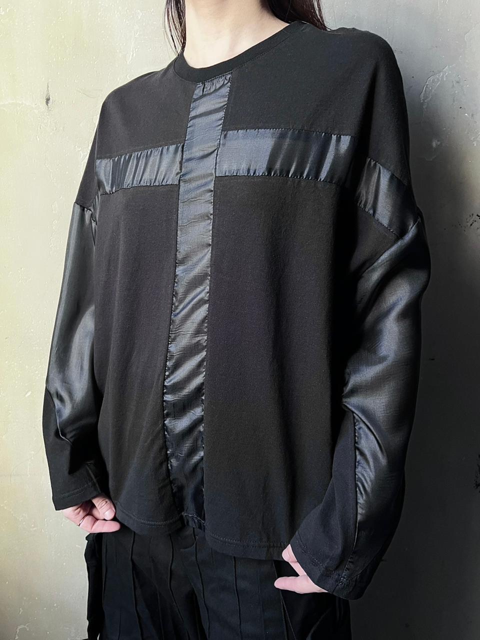 Лонгслив из хлопка с шелковой вставкой в виде креста. Подойдет для создания базовых и вечерних образов.