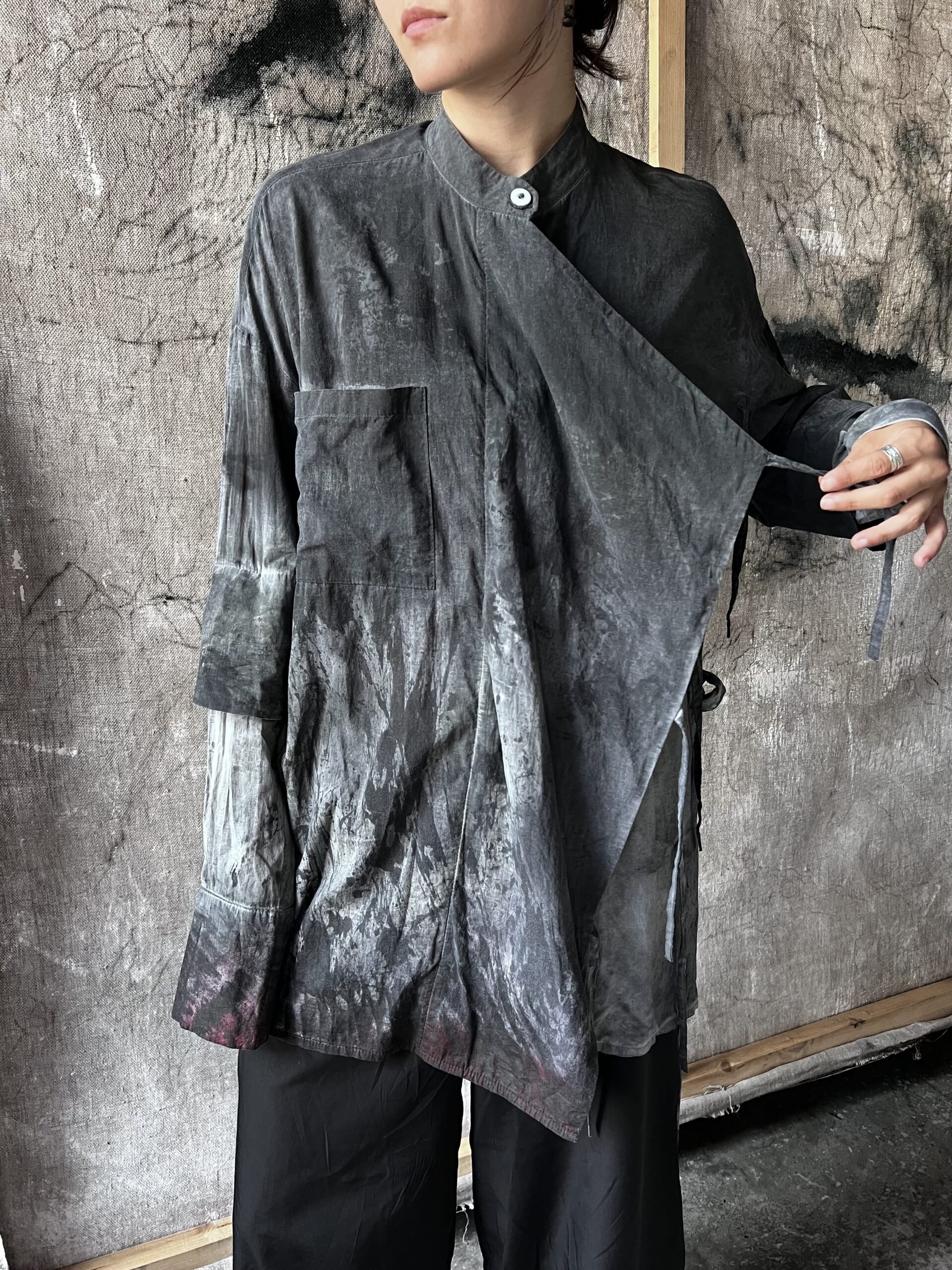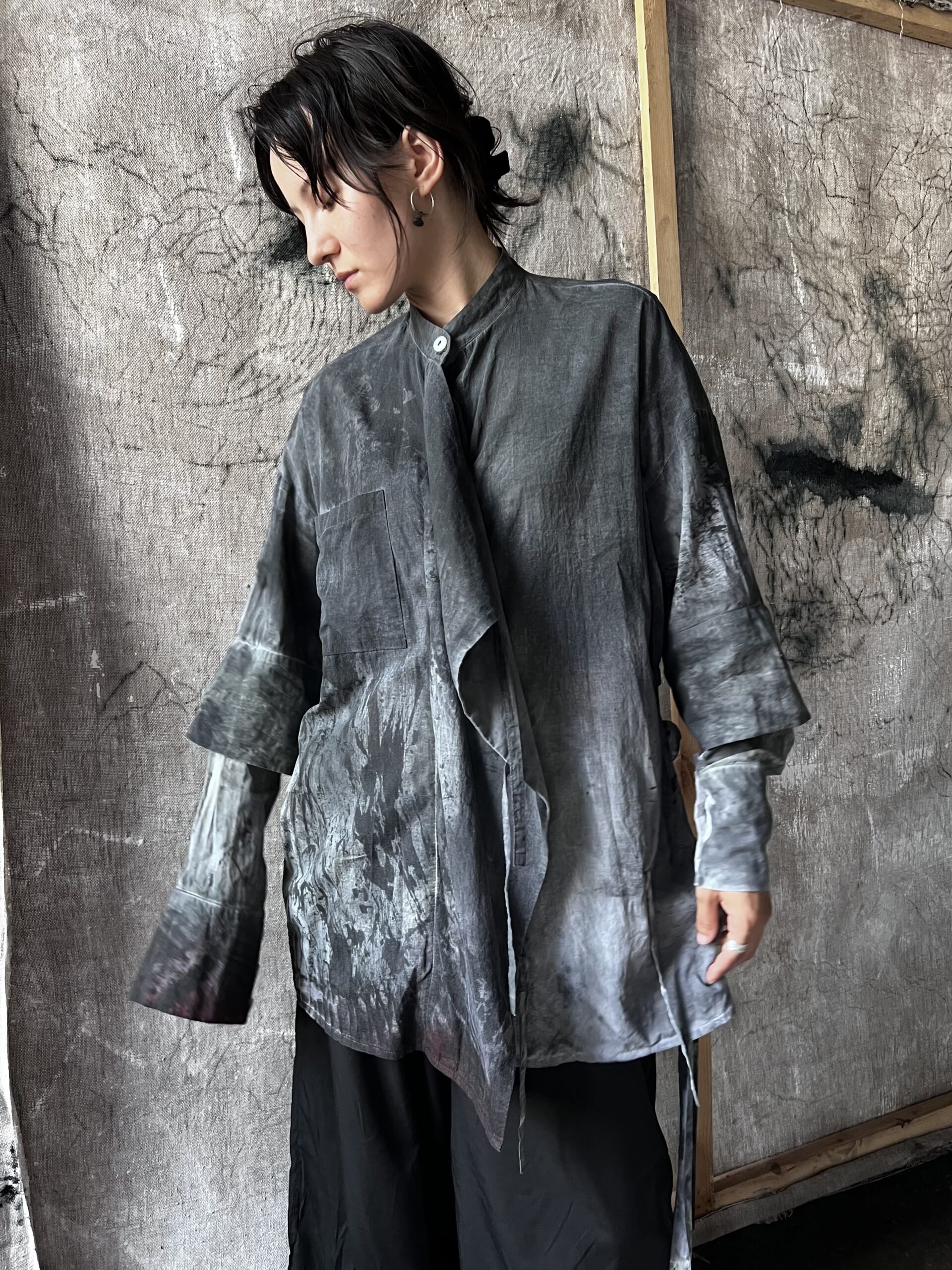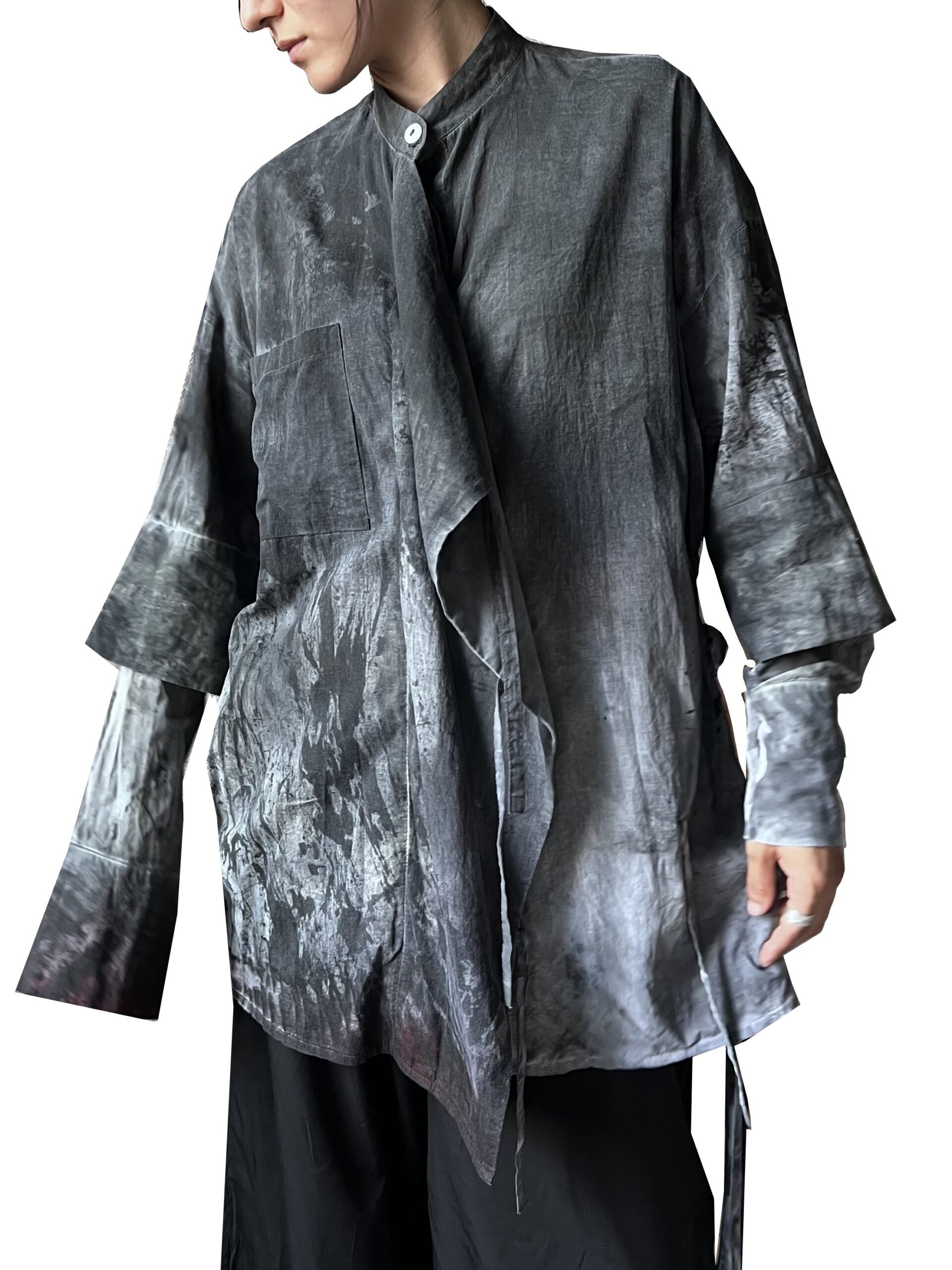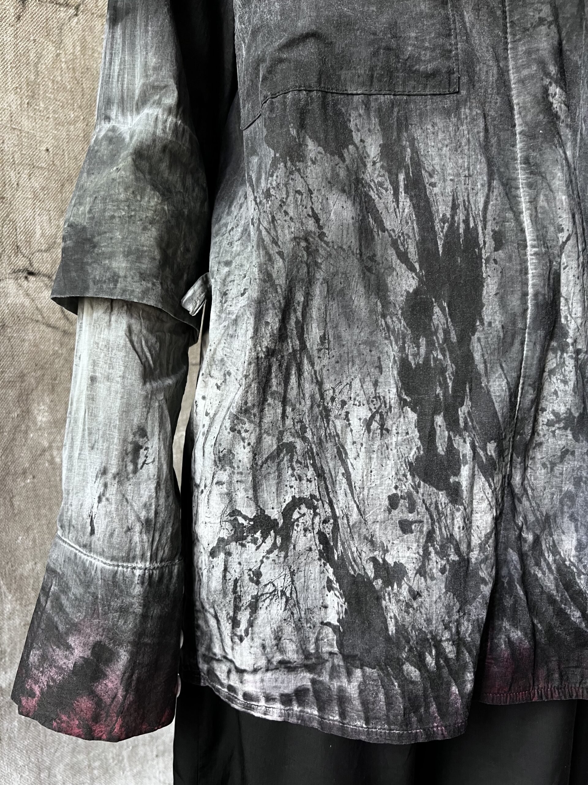 Эта уникальная хлопковая рубашка с двойным рукавом станет стильным дополнением вашего гардероба. Изготовленная из высококачественного хлопка, она обеспечивает комфорт и долговечность. Рубашка имеет оригинальный дизайн принт выполнен вручную,