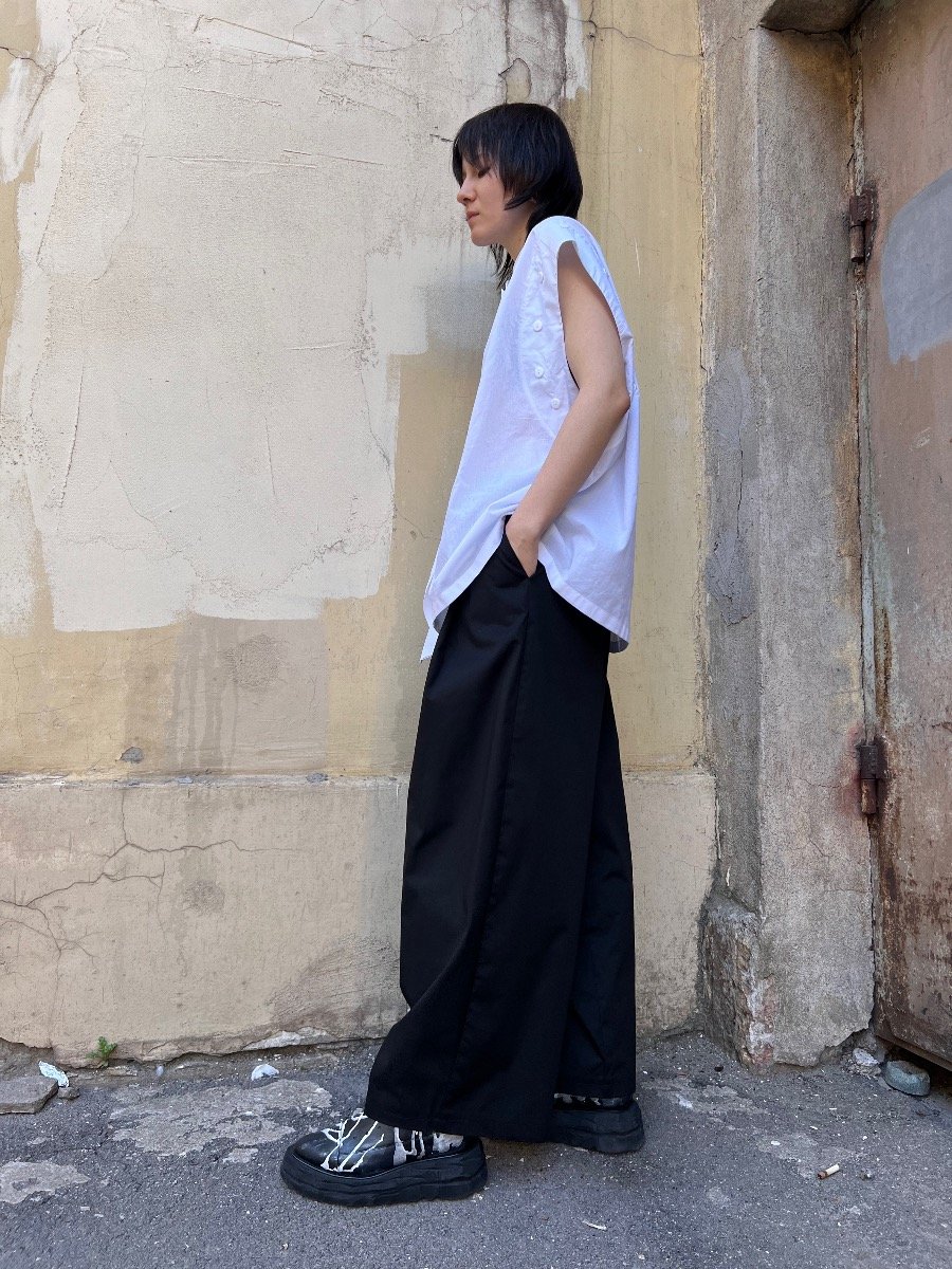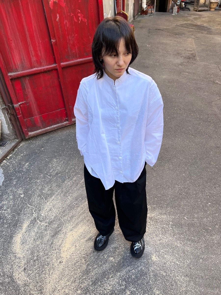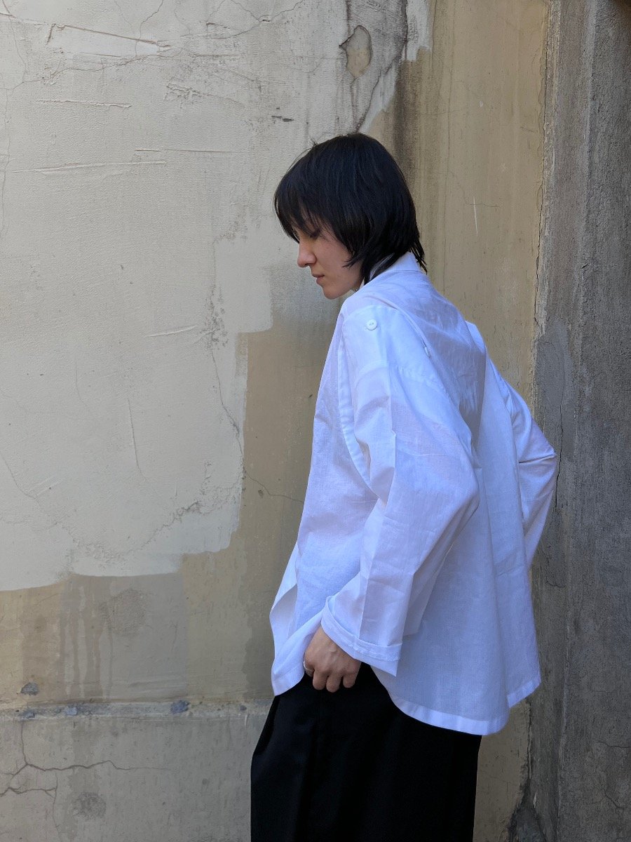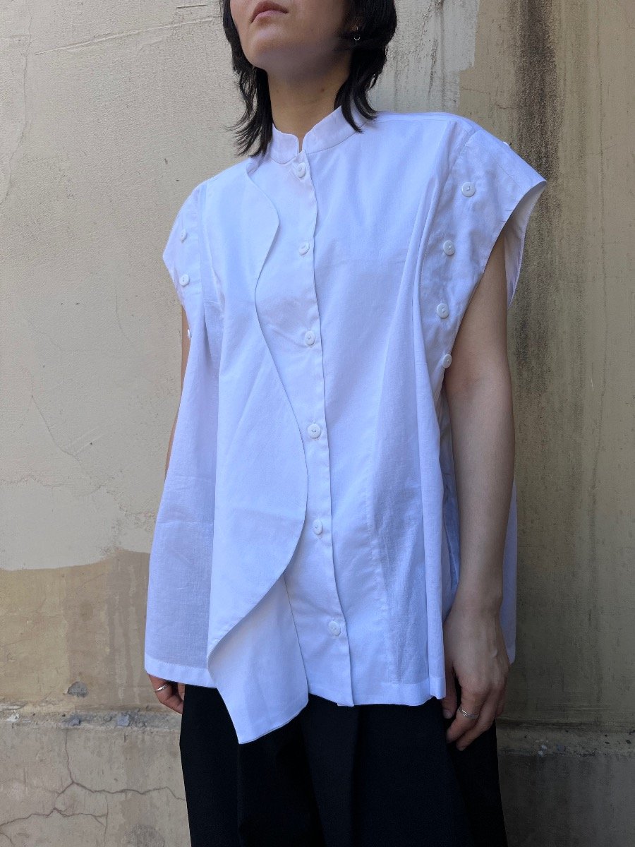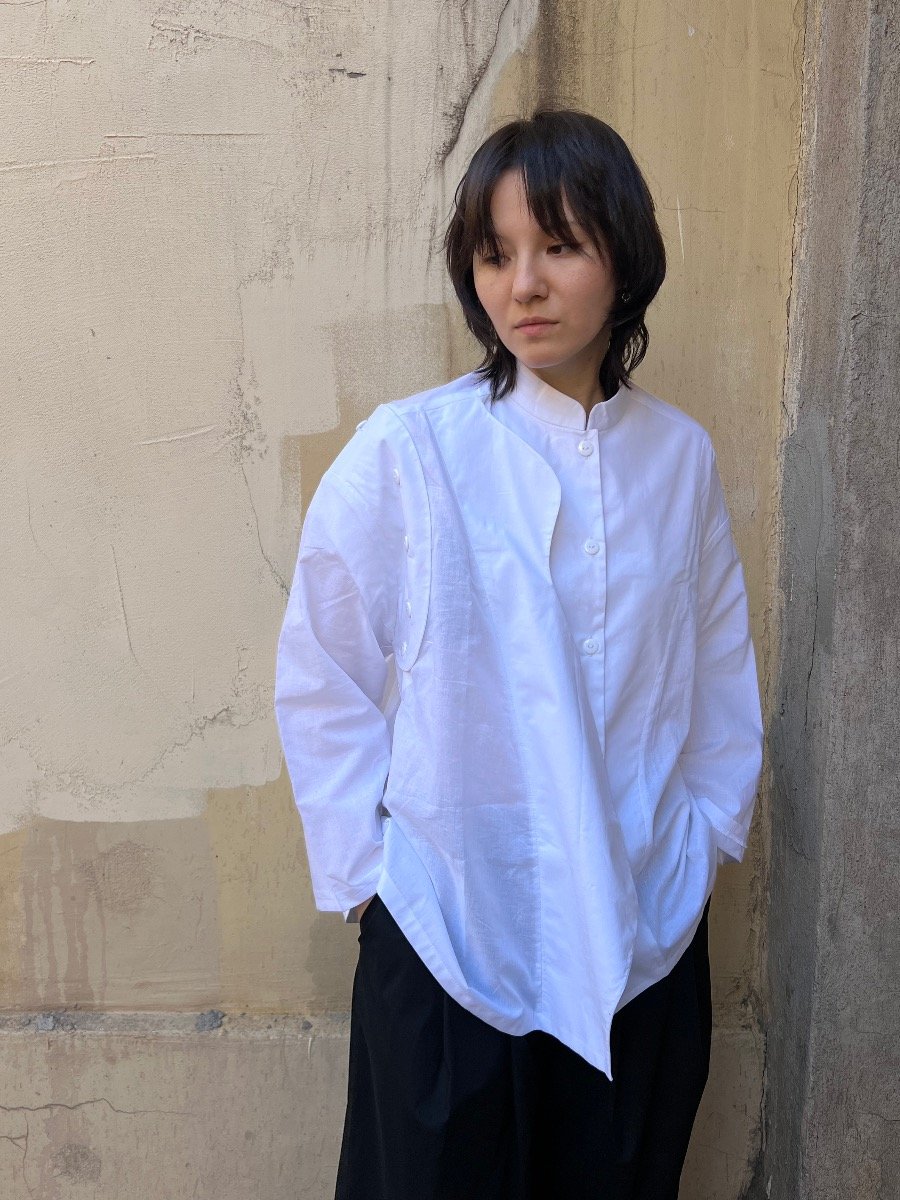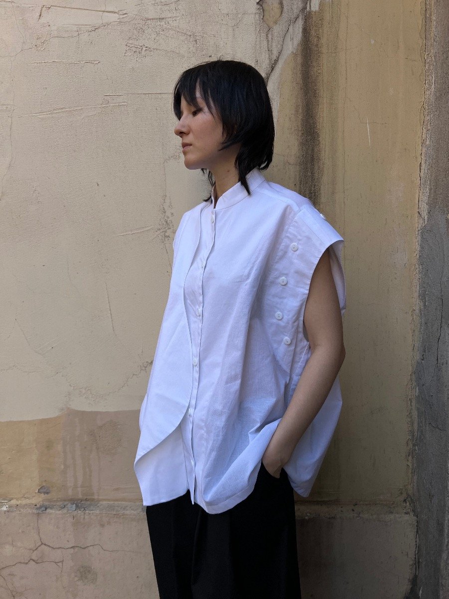 Белая оверсайз рубашка из мягкого натурального хлопка с отстегивающимися рукавами и декоративной отлетной деталью